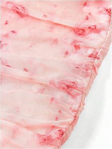 Feature: Floral Print, Spaghetti Straps, Ruched Bust, Mesh, Mini Short Length, Bodycon Dress for Girls