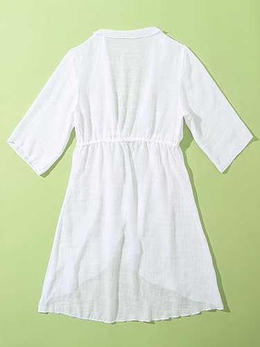 girls white swim cover up swimsuit bathing suit cover up kids teen girls cover up chiffon beach pool coverup short sleeve sheer see through kimono coverups summer beachwear tie front short kimonos for girls coverup