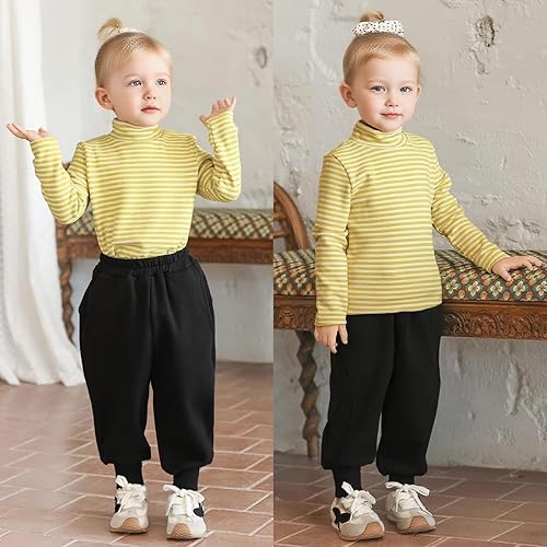 Toddler pants, unisex for boys and girls, medium thickness, stretchy fabric, cotton spandex blend, relaxed fit, tapered hem design, suitable for all body types.