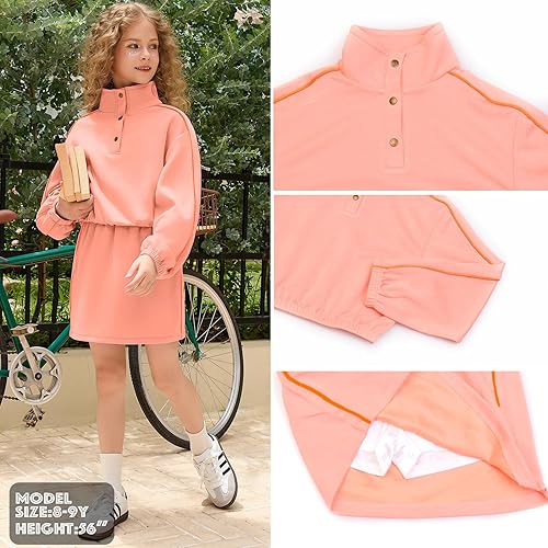 Stylish Design: Our girls' tracksuit set features a stand collar design with buttons for easy on/off and a fashionable look, built-in shorts design. While the vibrant side panel accents on the sleeves and the side on the skirt add a dynamic. The set includes side pockets on the skirt, offering convenient storage for small essentials