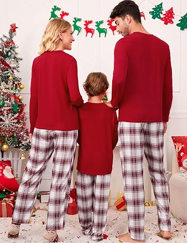 UNIQUE CHRISTMAS DESIGN: This matching family pajama set features a printed christmas tree graphic, "Merry Christmas" lettering, crew neck long sleeve top, classic plaid pants with pockets, elasticated waistband for easy wearing, 2 family matching outfits.