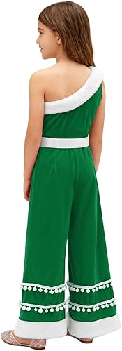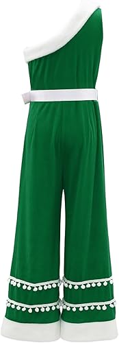 The one-shoulder design is trendy and fashionable, adding a unique and stylish touch to the classic Christmas look