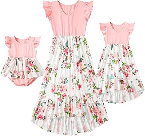 【Sweet Meets Chic】: These mother daughter matching dresses are crafted with intricate floral prints, perfect for fashion-forward moms and their adorable baby girls. The light blue mommy and me dress option offers a fresh, vibrant look, while the pink mother baby matching dresses add a touch of sweetness and charm