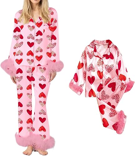 Material: Parent-child pajama pants set are made of 35% cotton and 65% polyester; Skin-friendly, soft and comfy, lightweight and breathable, Valentine pajama sets for women and little girls, Valentines' day pajamas sleepwear for women gilrs