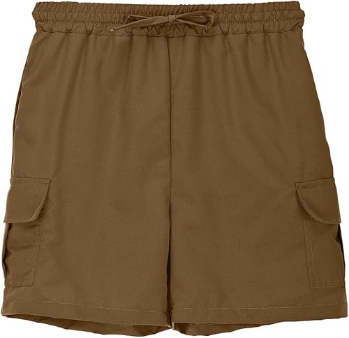 Moonker Boys Knee Length Cargo Shorts for Girls Teens Elastic High Waist Pants Solid Color Casual Loose Baby(Brown,9-10 Years)