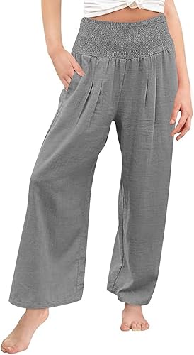 Moonker Girls Linen Palazzo Straight Wide Leg Pants High Elastic Waist Casual Trousers Summer Beach Travel Girl(Grey,6-7 Years)