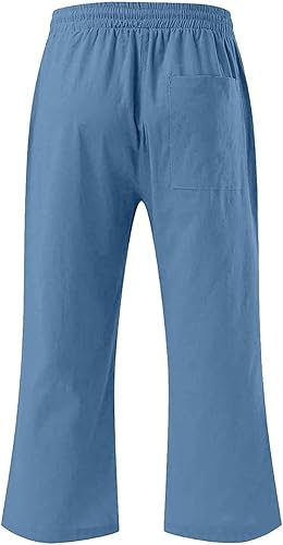 Moonker Teen Girls Linen 3/4 Trousers Lightweight Drawstin Straight Wide Leg Elastic Waist Casual Capr Pants 24m(Blue,12-13 Years)