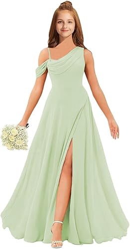 Desgin: This junior bridesmaid dresses for teen girls is made of chiffon, one shoulder girls formal dresses , chiffon long flower girl dresses for wedding , junior bridesmaid dresses a-line,long bridesmaid dresses for girls , prom dresses for teens with side silt , Cold Shouder junior dresses for teen girls formal,your little princess will be excited about this gorgeous chiffon dress.