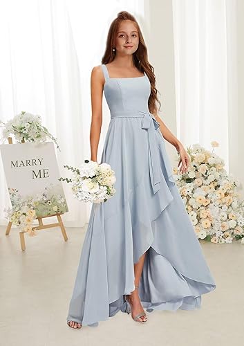 Desgin:This junior bridesmaid dresses for teen girls is made of chiffon, Square Neck girls formal dresses , chiffon long flower girl dresses for wedding , junior bridesmaid dresses high low,long bridesmaid dresses for girls , Spaghetti Strap junior dresses for teen girls formal,your little princess will be excited about this gorgeous chiffon dress.