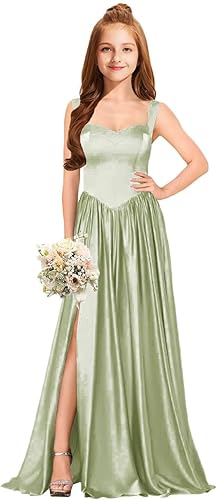 Desgin: This junior bridesmaid dresses for teen girls is made of satin, sweetheart girls formal dresses , satin long flower girl dresses for wedding , junior bridesmaid dresses a-line,long bridesmaid dresses for girls , prom dresses for teens with side silt , spaghetti straps junior dresses for teen girls formal,your little princess will be excited about this gorgeous satin dress.