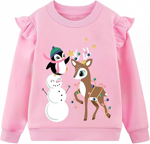 Unique and Festive Design: Our toddler and little girl holiday sweatshirt features a variety of Xmas-themed graphics, including Santa Claus, tree, snowflakes, reindeer, snowman and penguin. These fun and unique designs will immerse children in the festive atmosphere of Christmas