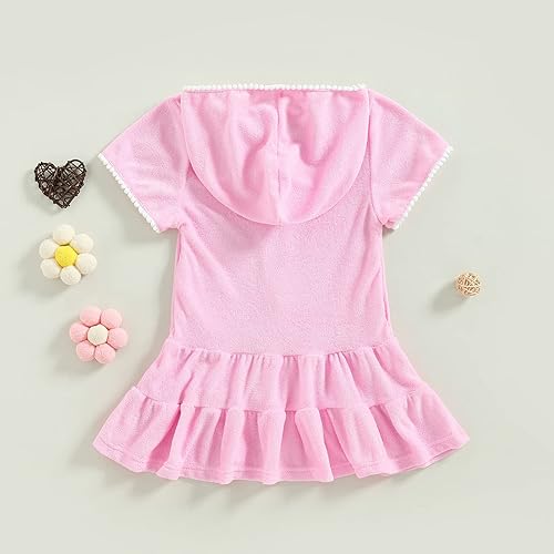 Short Sleeves, Super Cute Ruffled Hooded Beach Dress Cover Ups, Side Pocket, Zipper Up Closure, Toddler Baby Girl Little Kids Girls Summer Fashion Swimsuit Beach Dress Cover Ups Ruffle Bathing Suit Cover Up Cardigan Kimono Kids Swimwear