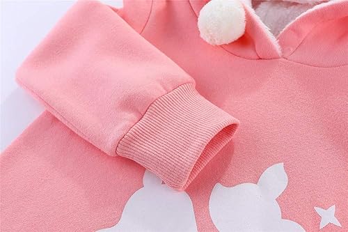 Mud Kingdom Girls Fleece Lined Hooded Sweatshirt with Deer Graphic(Hooded Pink,5)