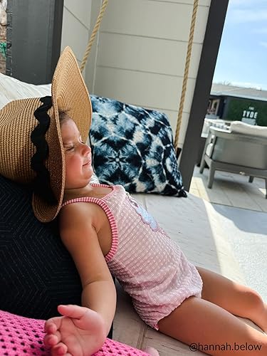 This charming one-piece swimsuit is designed to make a splash with its delightful appliquéd crinkle check pattern