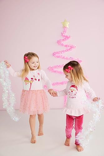 Mud Pie Girls Toddler Christmas Tunic and Legging Set, Pink Santa, 3T
