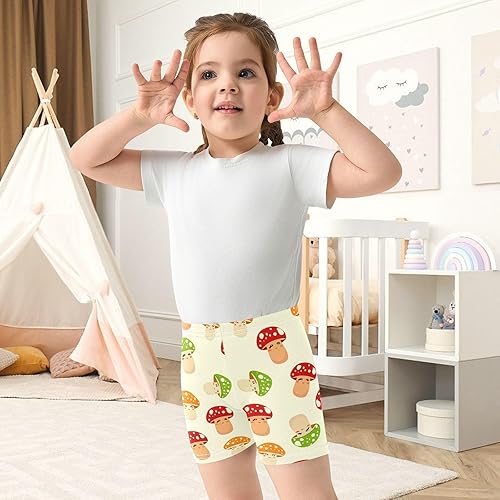 Mushroom Beige Girls Bike Shorts Toddler Soft Cotton Under Dress Cartwheel Shorts(Multi-mushroom Beige,5T)