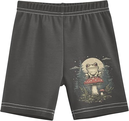 Mushroom Frog Black Girls Bike Shorts Toddler Soft Cotton Active Under Dress Shorts(Multi-,10 Years)
