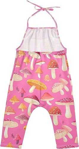 Mushroom Vibrant Toddler Girl Clothes Sleeveless Romper Jumpsuit for Girls Summer One Piece Romper Pants Size 1-6T(Multicolor,2T)