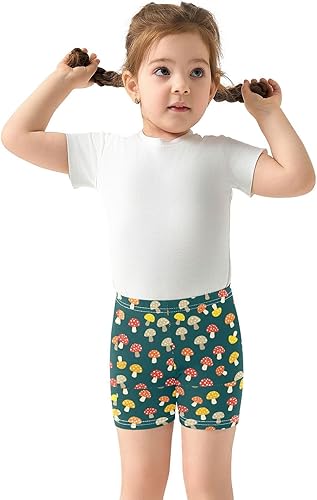 Mushroom Yellow Red Girls Bike Shorts Toddler Soft Cotton Under Dress Dance Shorts(Multi-mushroom Yellow Red,5T)