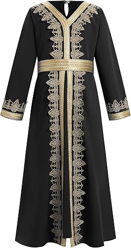 Occasions: Kids long sleeve v neck lace prayer dress middle east arabic kaftan dress dubai islamic eid church robe toddler girl muslim clothes fit for Muslim costume, Eid, Ramadan, prayer, ceremony, vacation or other occasions, also a great gift to your daughter, niece