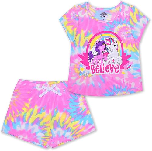 Contains one My Little Pony Believe print pink tie dye t-shirt and one pink tie dye matching shorts