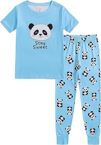 Design: Short sleeves and long pant, suitable for girls to sleep all night. Round neck design, easy to put on and take off. Cute cartoon pattern design, cute cat, panda, giraffe, strawberry pajama set.