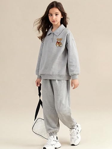 TRENDY POLO COLLAR & BEAR PATCH: The long-sleeve sweatshirt features a stylish polo collar, giving it a cool, preppy vibe. An adorable bear appliqué patch is neatly placed on the chest, adding a playful and charming detail that she will absolutely love.