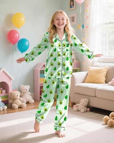 Fashionable Design: Our girls pajamas are designed with varieties of colors and cute patterns. pink bow pjs, green Avocado fruit sleepwear, blue star moon pajamas. These girls' sleepwear undoubtedly be a romantic surprise for your tween teen kids size 7-8 9 10-12 13-14 Years Old