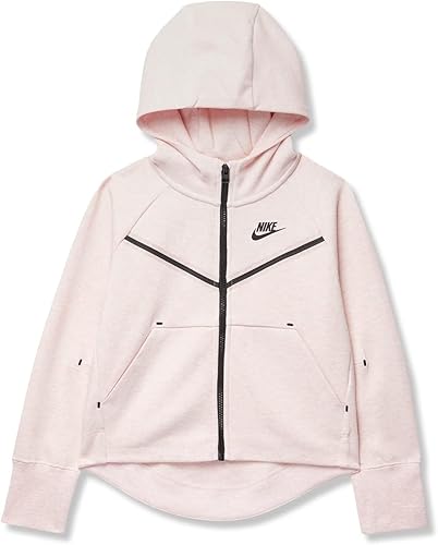 Nike Girl's NSW Tech Fleece Full Zip Hoodie (Little Kids/Big Kids) Pink Foam/Heather/Black MD (10-12 Big Kid)