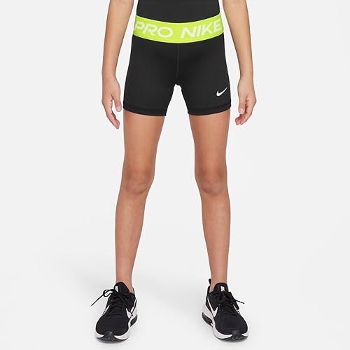 Nike Girls' Pro Shorts (Little Big Kid), Black/Volt/White