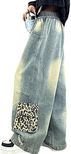 Stylish Leopard Print Pockets: The unique leopard print pockets add a fun and fashionable touch to these girls' wide leg jeans, making them a standout piece in any outfit.