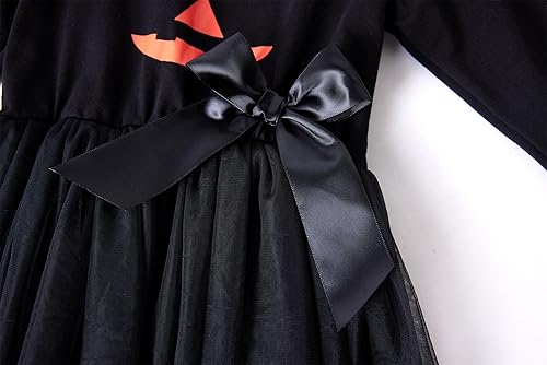 The dress seamlessly combines comfort with a festive, whimsical design. The playful top captures the essence of Halloween with its detailed patterns, while the tulle skirt adds a touch of enchantment. It is perfect for any Halloween event, allowing the wearer to embody the spirit of the holiday with style and joy. Well designed for 3 -7 Years little girl. Machine wash, gentle.