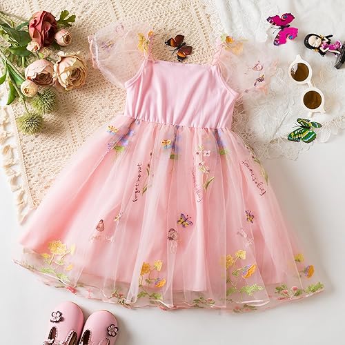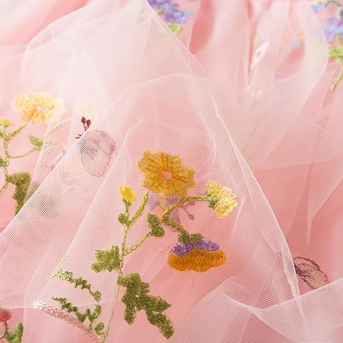 Baby girls cute summer dress,random flowers embroidery, fairy dress toddler princess tulle dress,A-line, easy to take off and pull on.