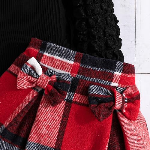 Feature: Baby girl fall outfits,cute lantern puff sleeve, classic vintage brown plaid Skirtcomfy ribbed shirt and tweed plaid skirt set, girls plaid skirt with delicate bowknot decoration,lovely and stylish, Suitable for your little princess in autumn winter and Christmas wear.