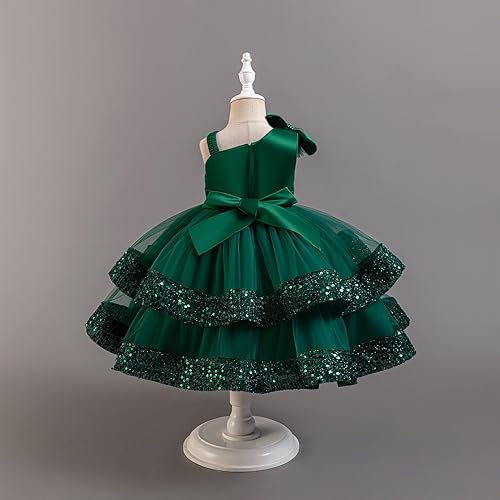 Toddler Girls Princess Birthday Party Dress: Elegant Kids girls asymmetric neckline sequins glitters ruffle tulle tiered party dress toddler flower girl dress wedding, sequins princess tulle tutu dress sparkly birthday dress for girl, perfect as toddler flower girl dress, little girl wedding guest dress, toddler pageant dress, first birthday dress, green Christmas dress, 2th 3th 4th 5th 6th 7th 8th birthday girl cake smash photoshoot dress, father and daughter dance gown.