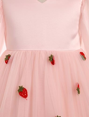 Girls Birthday Dress: Kids girls long sleeve cherry/ heart/ strawberry ruffle tulle tutu dress ball gown wedding flower girl dress, red hearts print tulle Valentine's Day dress, cherry birthday dress for girls, strawberry birthday cake smash photoshoot dress, little girl mesh puffy sleeve tulle dress is made of premium fabric, this dress ensures breathability and comfort, even during long hours of wear.