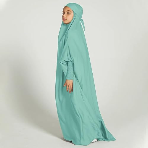 OCCASION - The islamic long robe of middle eastern arab muslim girls is an excellent gift idea for any occasion. Suit for ramadan, eid al fitr clothing, prayer dress ceremonies, liturgical hymns, performances, easter , children's day, ceremonies, churches, schools, photography props, praying, wedding or daily casual wear. The prayer hijab dress Muslim robe for girl, simple and elegant. When your girl need to go outside or pray, this one-piece Abaya dress can be put on quickly and easily