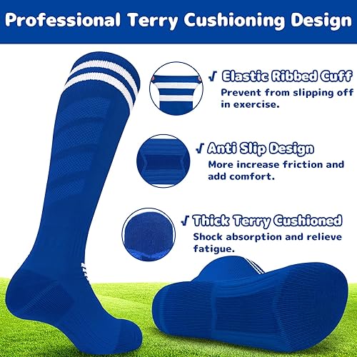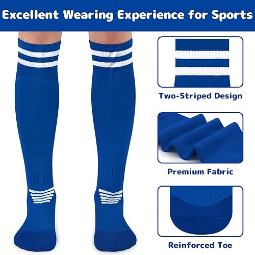PERFECT FOR VARIOUS SPORTS: Comes with vibrant colors and classic stripes designs, these boys soccer socks and girls soccer socks are definitely must-have accessories for various team sports! They are not only perfectly suitable for playing soccer, football, baseball and softball games, but also wonderful for rugby, hockey, basketball, lacrosse, tennis, school gym, and other athletic sports. Well paired with sportswear and shin guards, these men soccer socks can bring you excellent sports time!