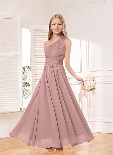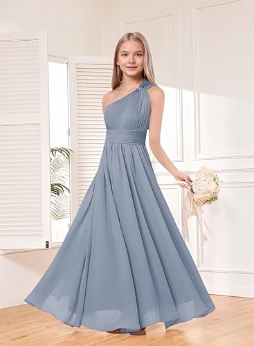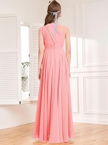 Junior bridesmaid dress features: one shoulder girls bridesmaid dress, choiffon flower girl dress, ruched girls party dress, A-line long formal dress for girls, girls fancy chiffon dress, girls' graduation dress,elegant middle school dance dress, comes with zipper back along with sash,to fit your girl better, this girls prom dress will show your girl's charming demeanor with every step.