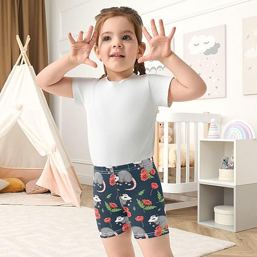 Opossum Red Flowers Girls Bike Shorts Toddler Soft Cotton Active Biker Shorts(Multi-opossum Red Flowers,5T)