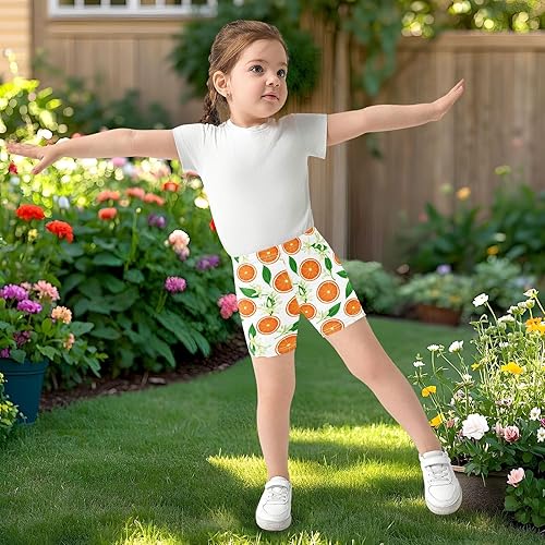 Orange Flowers Girls Bike Shorts Toddler Soft Cotton Under Dress Cartwheel Shorts(Multi-orange Flowers,10 Years)