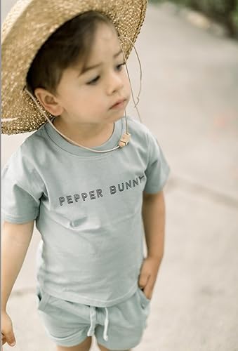 COORDINATED DESIGN: Matching set features a stylish t-shirt with 'PEPPER BUNNY' text print and comfortable pull-on shorts with drawstring waist
