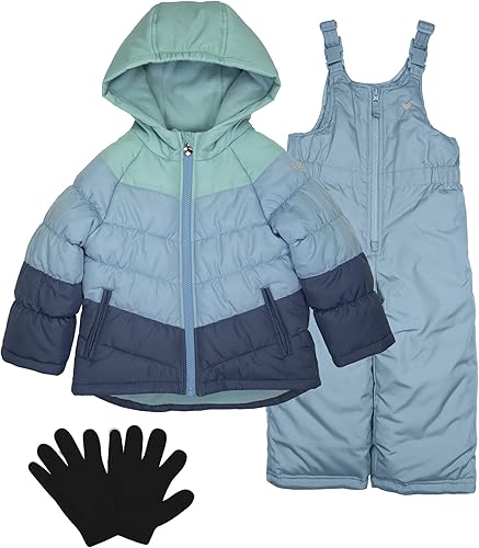 BUNDLE INCLUDES: 1 OshKosh heavy weight girls snow bib overall pants, 1 warm jacket, and 1 pair of kids magic stretch gloves(2T-6X). Girls snow pants are hypo-allergenic polyester filling for added warmth. Polyester filling is a great down jacket alternative for children or adults with allergies. Winter snow bibs have a water resistant and wind resistant outer shell. Girls ski pants help keep kids warm and dry in the winter and while sledding, skiing, or playing in the snow.