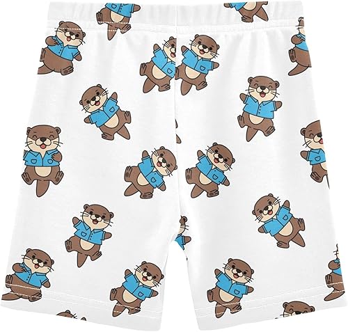 Otters Blue Girls Bike Shorts Toddler Soft Cotton Under Dress Dance Shorts(Multi-otters Blue,10 Years)