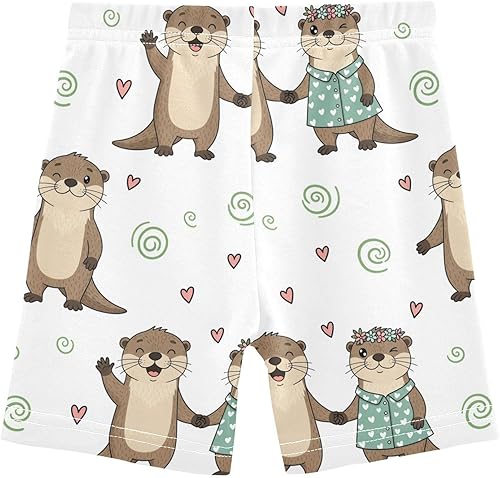 Otters Hearts White Girls Bike Shorts Toddler Soft Cotton Active Biker Shorts(Multi-otters Hearts White,8 Years)
