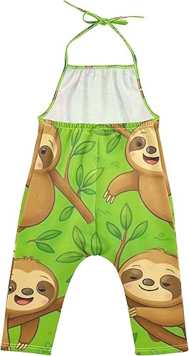 Overall Jumpsuits Little Girls Rompers Toddler Spaghetti Straps Summer Outfits Cute Cartoon Sloths Green 12m(4T)