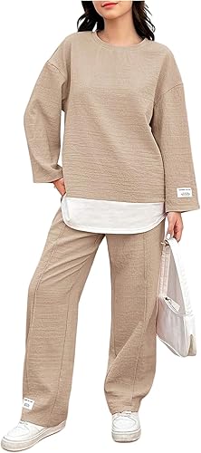 Features: 2 Piece pants clothing set, crew neck baggy tshirts, wide leg track pants