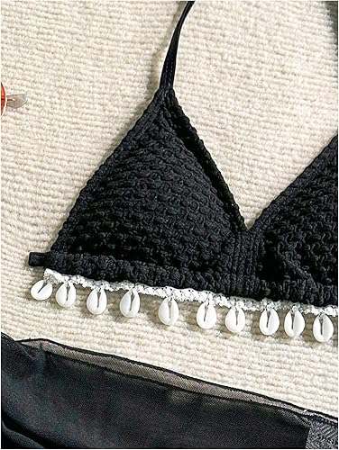 Features: 3 piece bikini swimsuit, textured, triangle bra, halter bathing suits, bikini set with cover up
