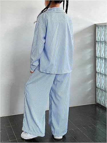 Design: Stripes, pocket, loose, 3 pieces pants, button down shirts and camisole set