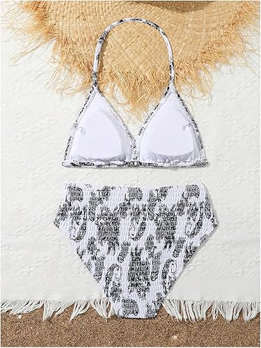 Features: Paisley print, shirred, color block, halter neck, high waisted, 2 piece, bikini set for girls